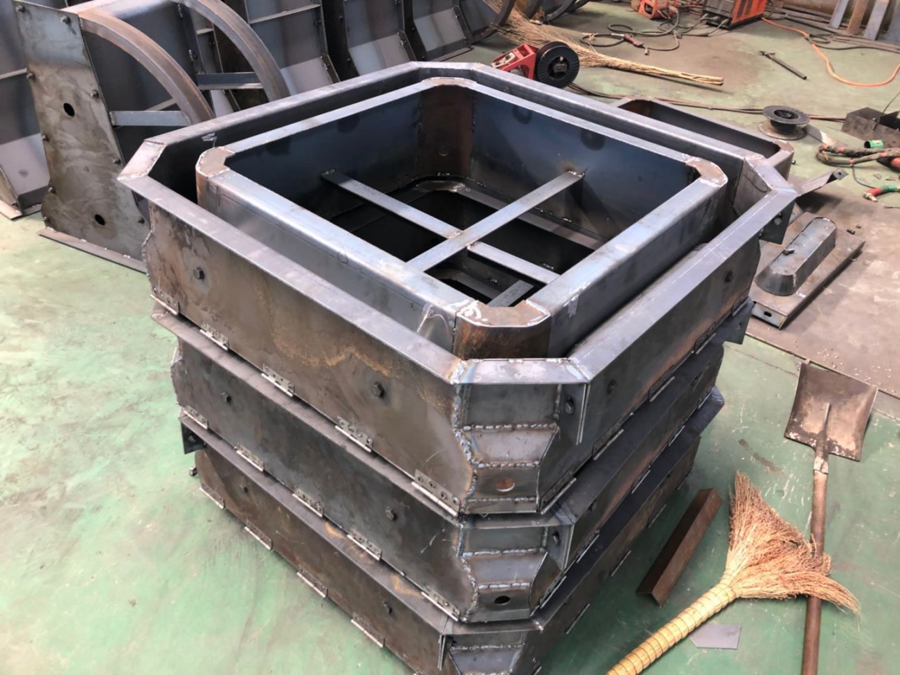 這種類型的模具一般用于制作塑料模具,且模具使用量較大,往往每個工程都要使用上萬個塑料模具才能滿足要求。但對于箱型、階梯式生態護坡等大型預制生態護坡所需的鋼制模具,由于注塑機無法完成這類模板的制作,只能采用鋼板焊接工藝。